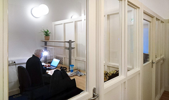 The main hall of 4 Cockburn Halls is an attractive, well proportioned space with some natural lighting. It has been partitioned into four lockable cubicles, 2 x 2.7 metres.